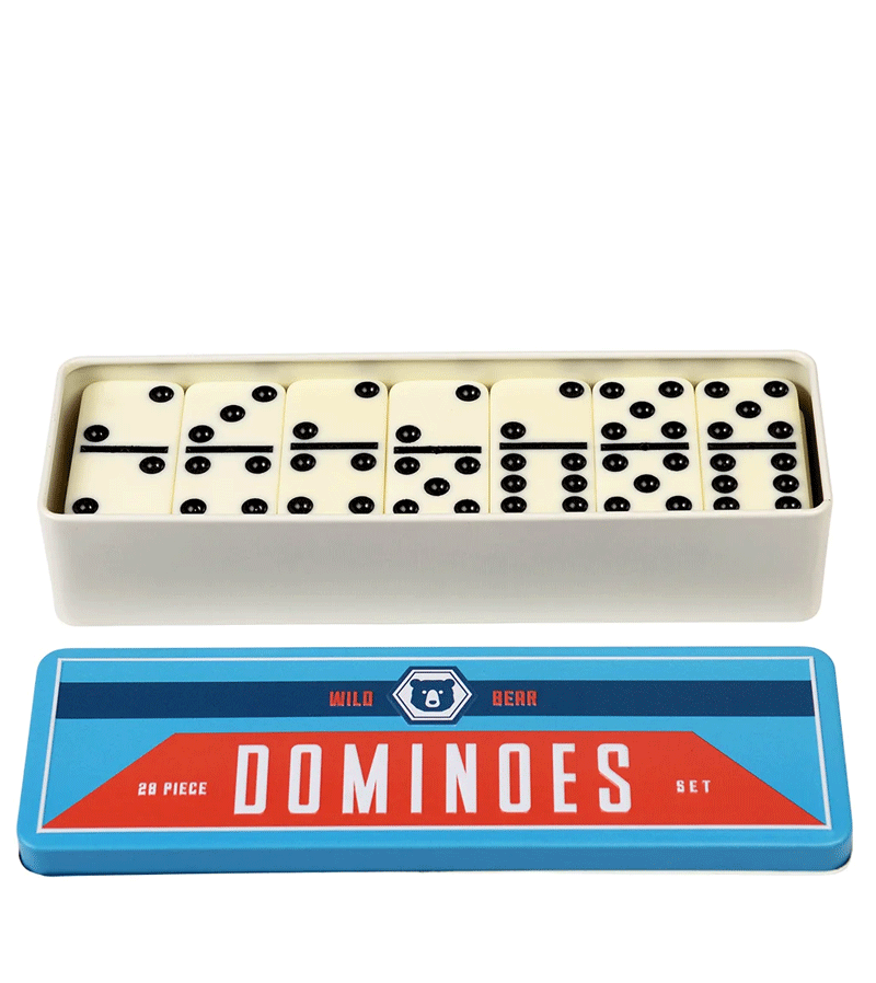 A dominoes set in a metal tin from our Wild Bear collection.