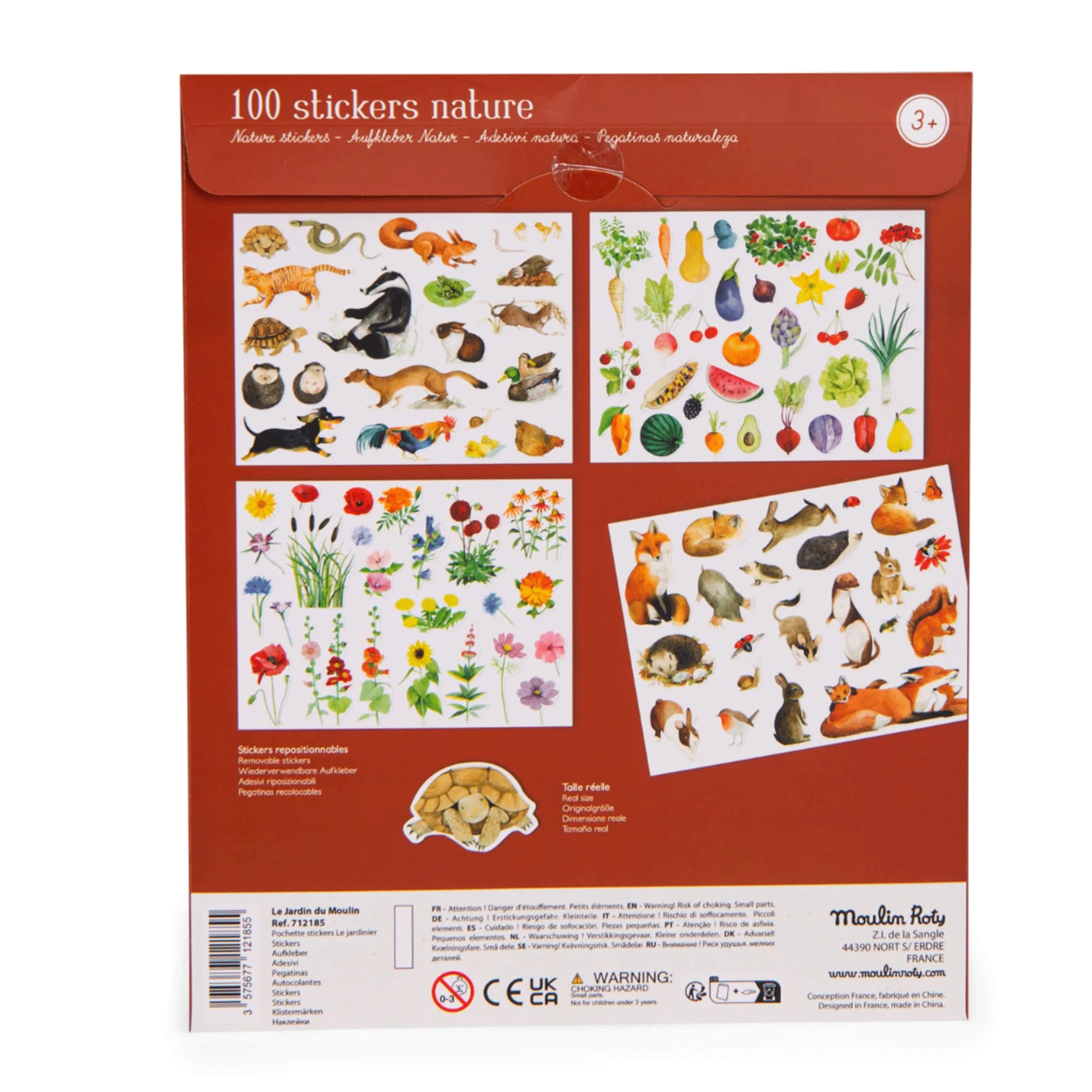Pack of 100 repositionable nature-themed stickers to create pretty decorations.
