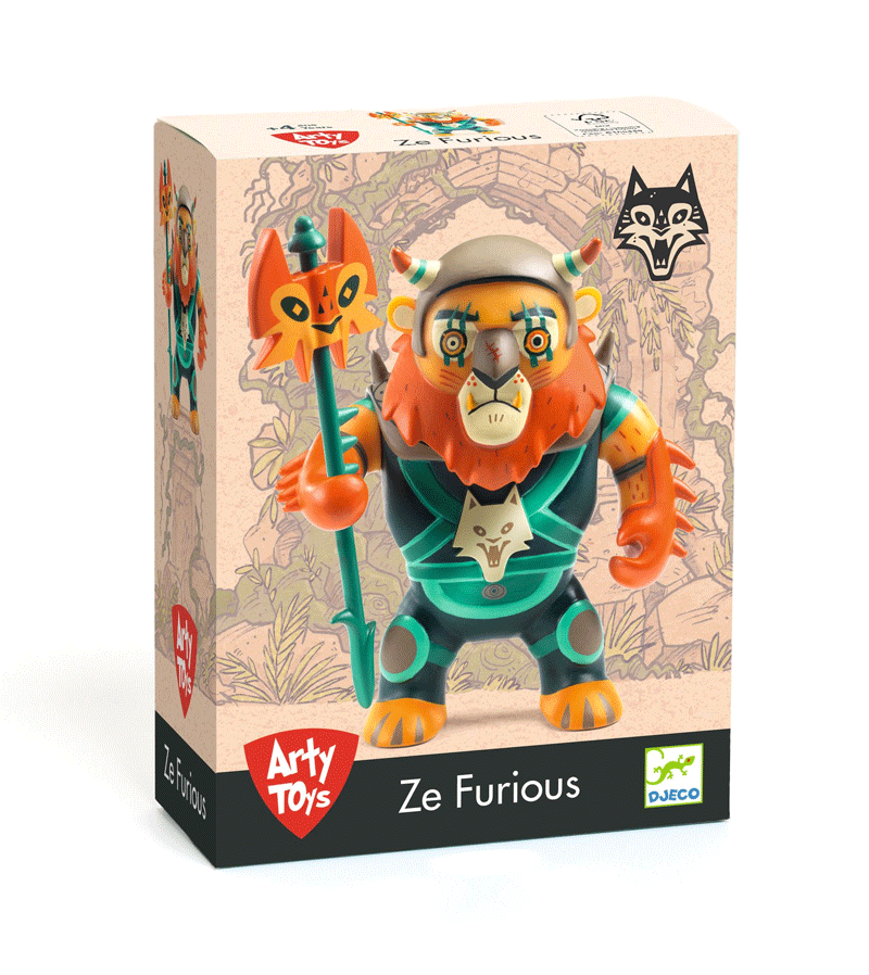 Ze Furious, leader of the animal warrior clan, impresses his opponents with his large build, large spear, and menacing air. He leads battles with passion to ensure his clan is victorious. Inspired by the art toy movement, Arty Toys figurines are created by artists from all walks of life: illustrators and designers give each character their own unique touch. Articulated figures that can be displayed, collected, or placed at the heart of stories and fabulous adventures!