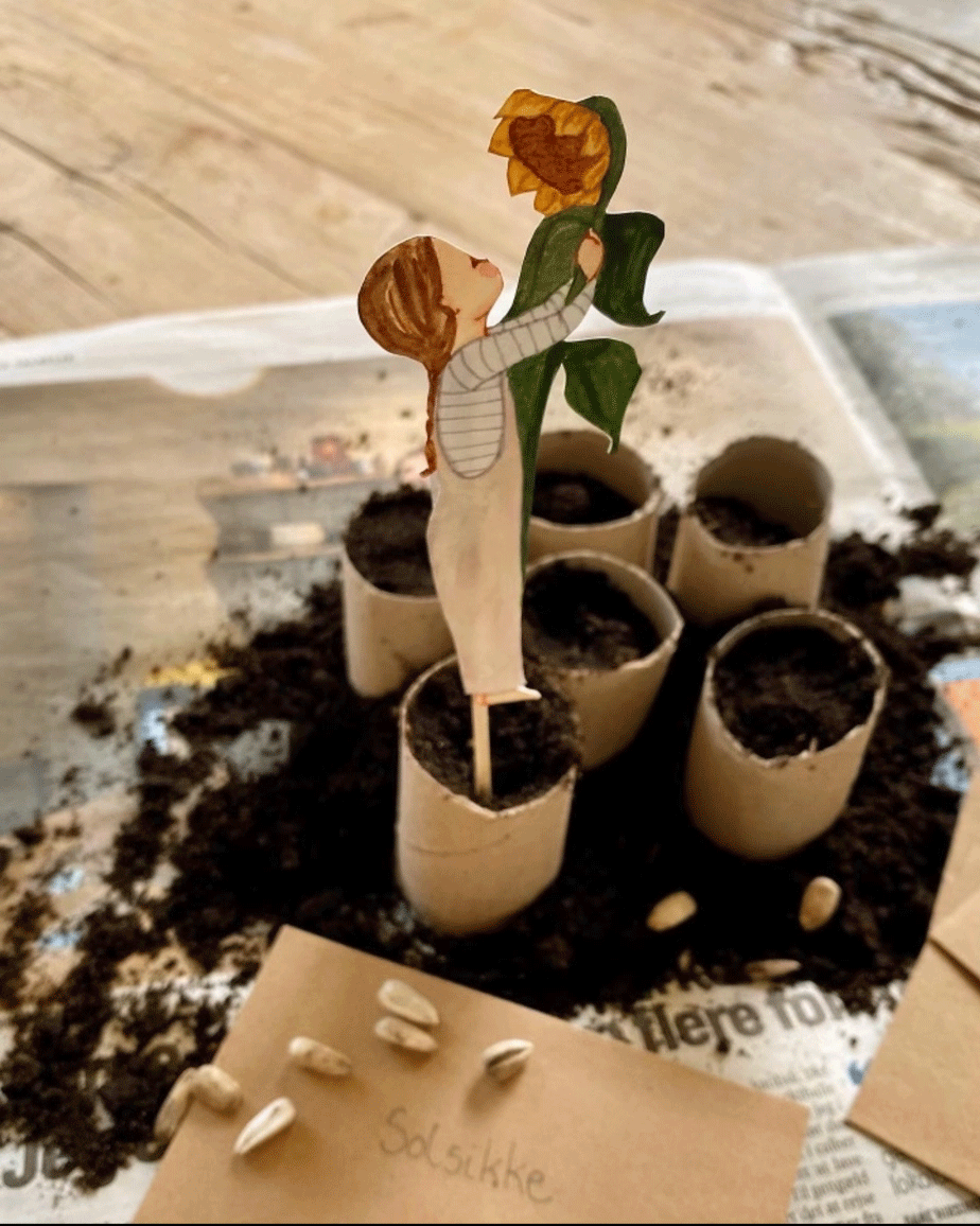 Make the experience extra cozy with these cute kids planting flowers.