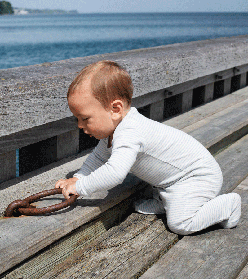Mist and Ecru Stripe Organic Cotton Romper by Serendipity