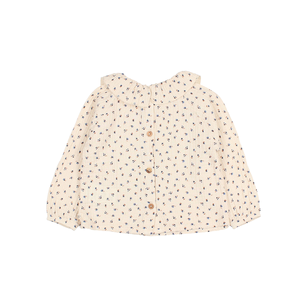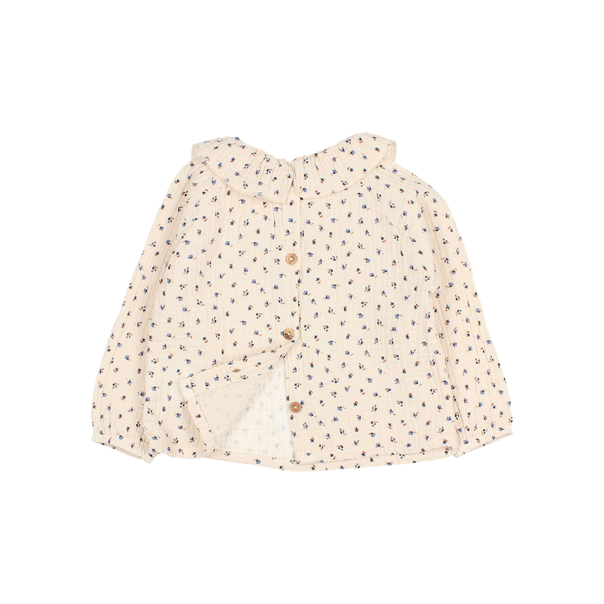 Featuring the delicate "Fall" print, the blouse is adorned with tiny floral motifs in muted tones, perfect for the season.