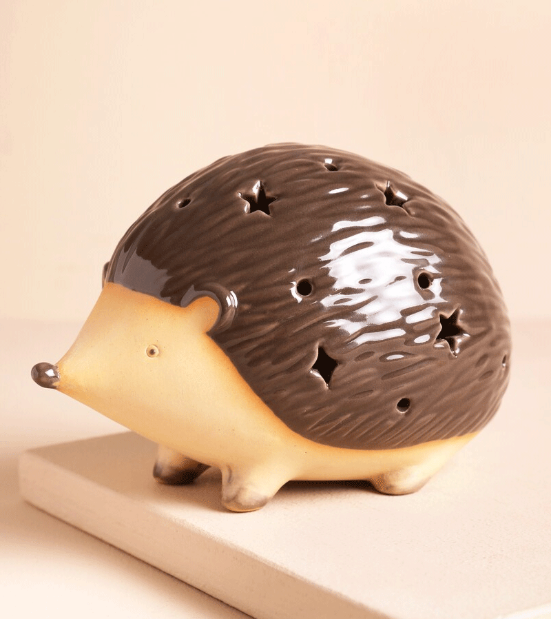 This adorable hedgehog's soft glow will transform cold nights into a cosy woodland wonderland. Containing 2 batteries, simply turn on and place on a shelf, bedside table or a mantel piece and feel the warm glow of stars reflected onto the wall or ceiling, turning your room into an autumnal scene.