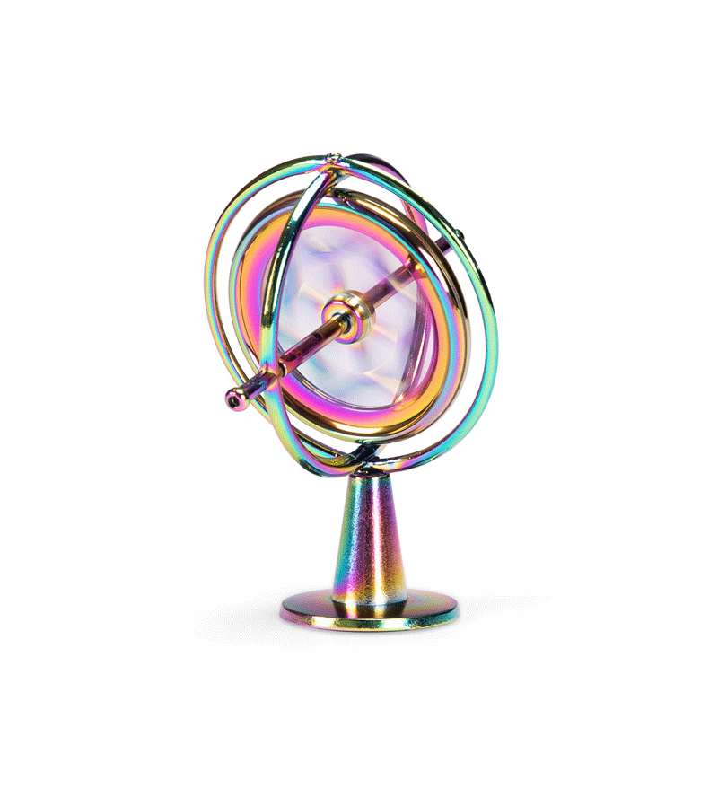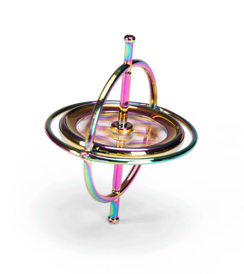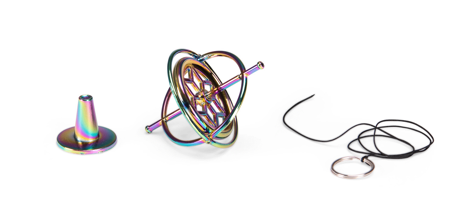 Made of changeable zinc, the gyroscope defies gravity and can balance on a fingertip, a pencil and even a string!
