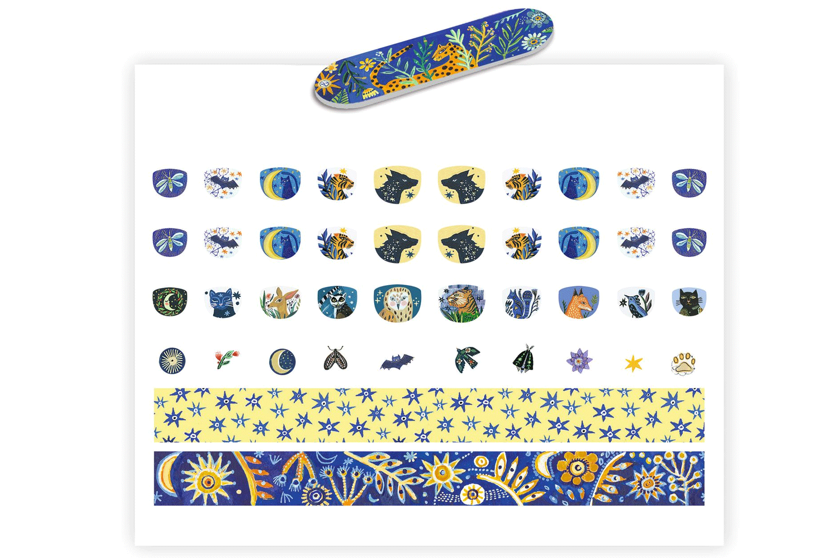 Finally a manicure adapted to little ones: express, easy to apply and remove! From the smallest sticker for the little finger to the largest, for the thumb, stick, press: it's done! No peeling varnish, just the pleasure of decorating your nails with pretty illustrations! And to vary the patterns or create a custom sticker: cut a piece of the self-adhesive strip corresponding to the width of the desired nail. and file to adjust.