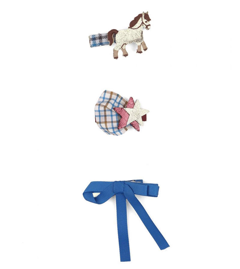 Stand out with our Jubilee Clips Set in Checkered brings together horse, star, and bow designs for a playful accessory collection that adds charm and personality to your little one’s everyday style.
