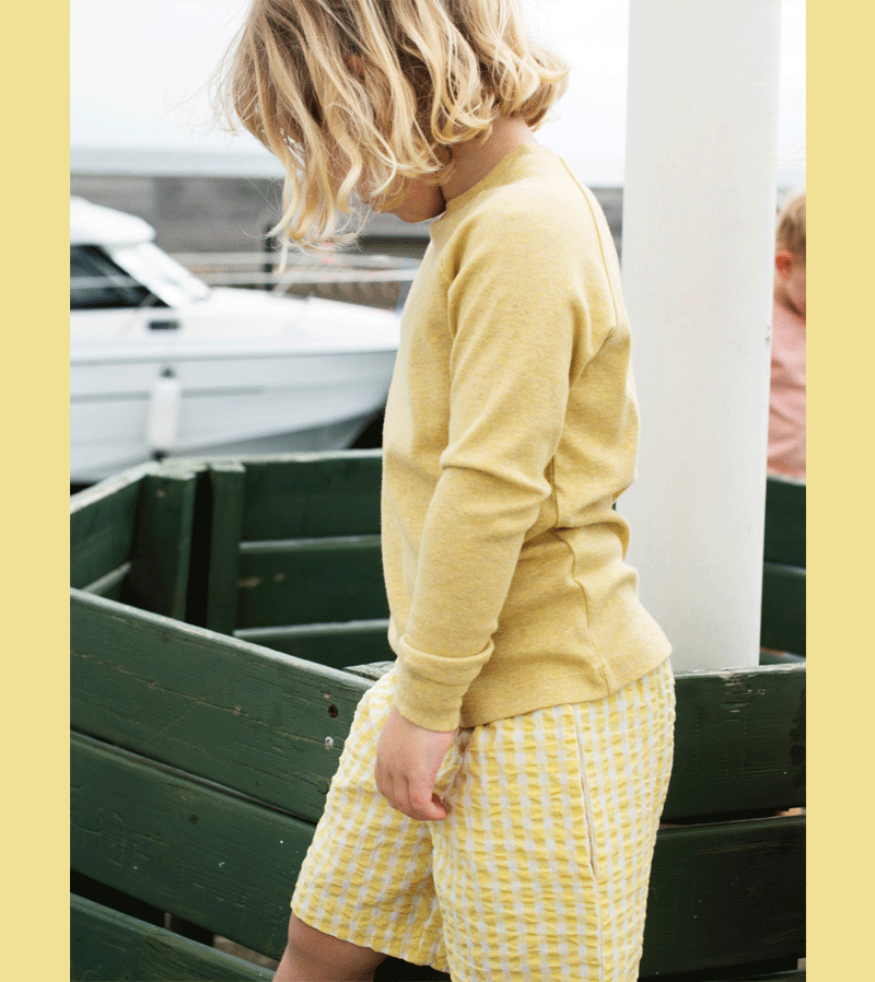 Checkered shorts  in seersucker woven organic cotton. Lemon white Checks design with elasticated waist