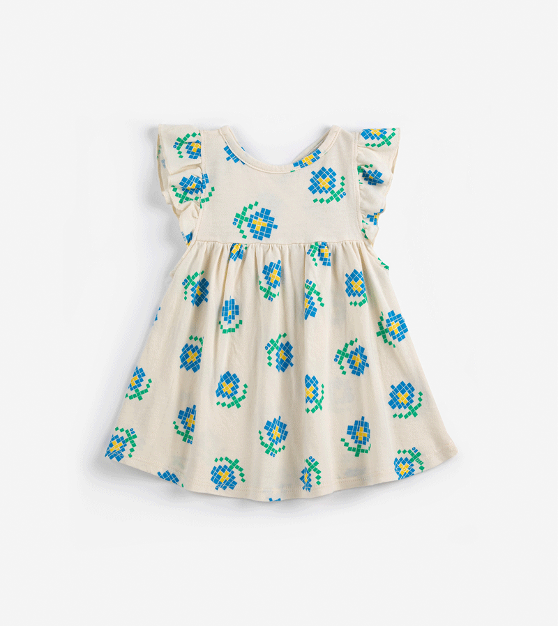 Pixel Flowers all over Ruffled Dress by Bobo Choses