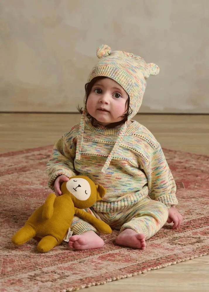 A timeless piece to love and cherish season after season. Crafted from 100% organic cotton, this beautifully soft baby & kids knit trouser is made with a unique rainbow space-dyed yarn, developed exclusively by our founder Tracey, making it truly, one-of-a-kind!