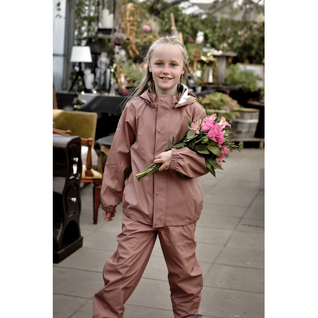 Classic PU rain jacket by mikk-line for children. This practical solid-coloured rain jacket is made of waterproof fabric with 66% GRS recycled polyester, and it features a name tag with room for more than one name, so please pass it on and let it be re-loved.