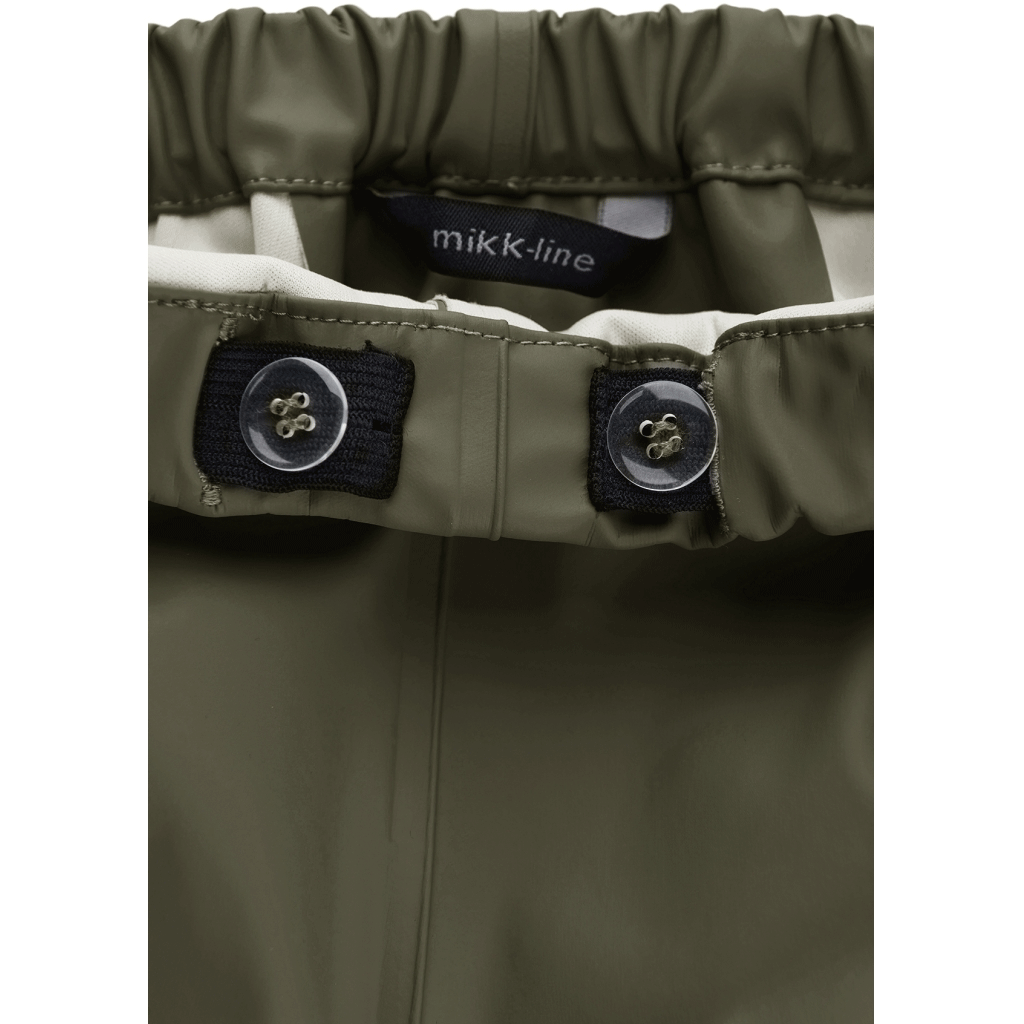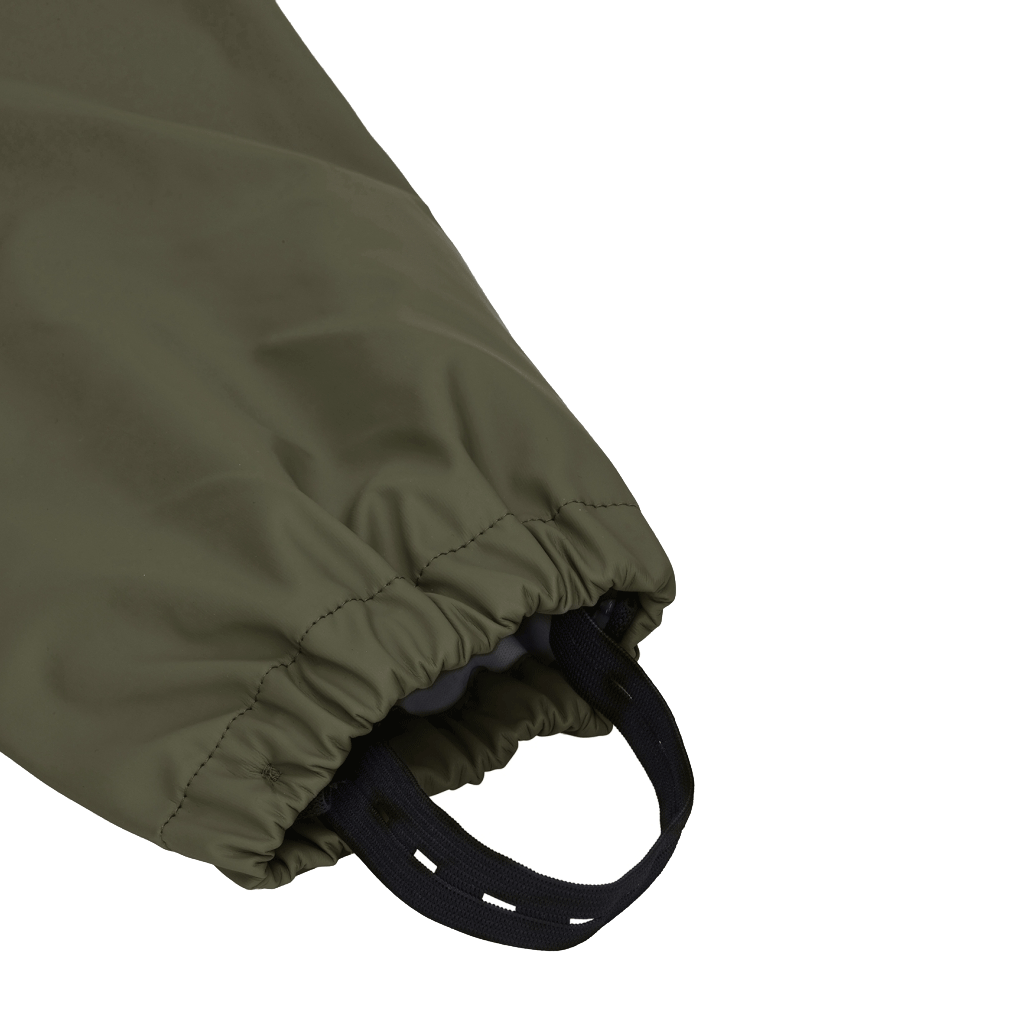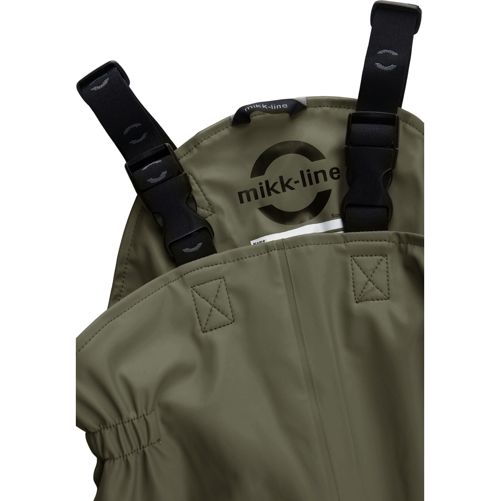 Waterproof solid-coloured PU rain pants from mikk-line. These practical rain pants are made of waterproof fabric with 66% GRS recycled polyester and 34% polyurethane. They are designed for children to have fun in the rain, jumping puddles, sliding down the wet slide, playing in the wet sandbox etc. You can combine the pants with a nice mikk-line PU rain jacket or coat for a full rainwear set. Place the adjustable foot straps underneath the wellies/boots to prevent the pants from sliding up and keep the feet dry. The rain pants also feature a name tag with room for more than one name, so please pass them on and let them be re-loved.